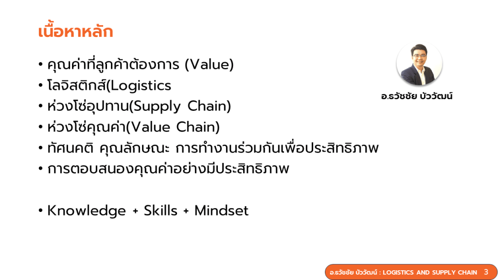 หลักสูตร : การจัดการโลจิสติกส์และซัพพลายเชนด้วยการทำงานร่วมกันเพื่อความสำเร็จขององค์กร