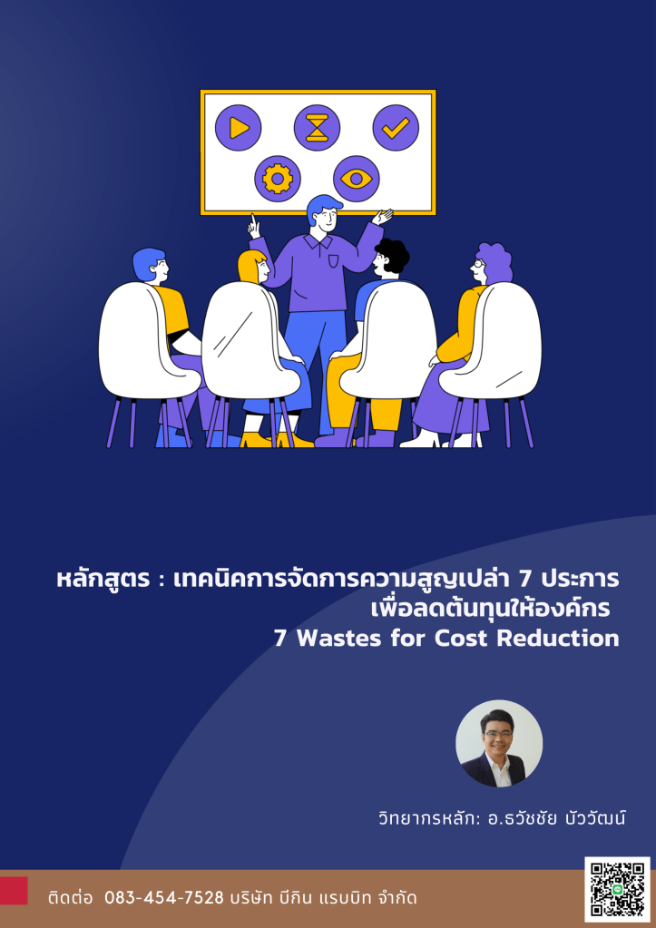 | 14:30- 16:00 | กิจกรรที่ 4. นำเสนอแนวทางการลดความสูญเปล่า เพื่อลดต้นทุนให้องค์กรแนะแนวทางเพื่อการพัฒนาอย่างต่อเนื่องเพื่อนำไปปรับใช้ทันที บทสรุปความสำคัญและการนำเทคนิคการลดความสูญเปล่าเพื่อลดต้นทุน |