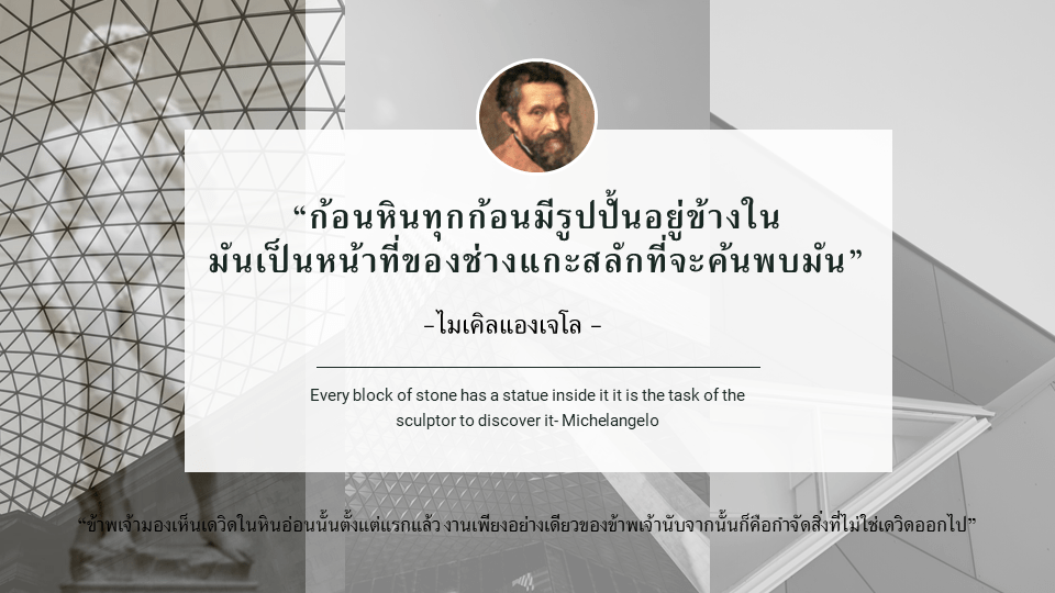 ที่ต้องแกะหินส่วนที่ไม่ใช่ออก ให้เหลือแต่เนื้องานที่ต้องการและสร้างผลงานที่ยิ่งใหญ่ได้