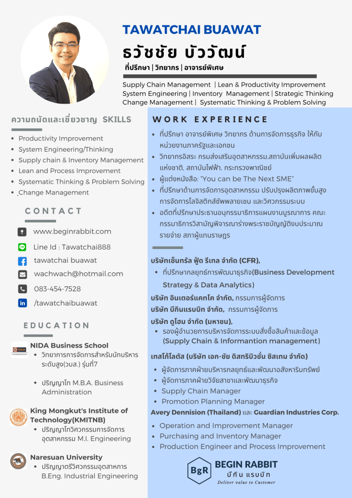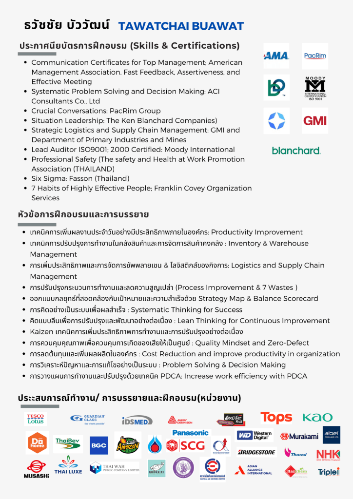 จากประสบการณ์และการทำงานโดยตรงด้านการผลิต ด้านโลจิสติกส์และซัพพลายเชน, การสั่งซื้อและการวางแผนความต้องการ, และปรับปรุงกระบวนการให้มีประสิทธิภาพสูงสุด การวิจัยและพัฒนาโครงการต่างๆ ที่ช่วยปรับปรุงกระบวนการผลิต ลดต้นทุน และเพิ่มประสิทธิภาพ ด้วยเทคนิคทางด้านวิศวกรรม ให้กับธุรกิจในหลากหลายอุตสาหกรรม